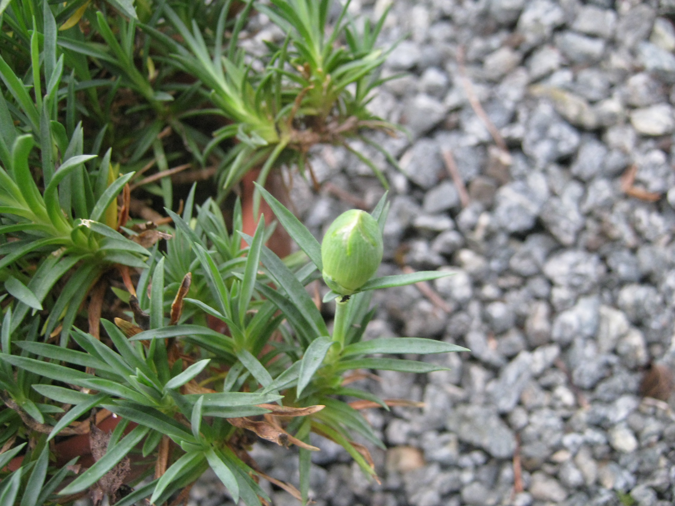 水浸しにされた後、水切れで干からびかけていたため、駄目元で地植えにしたカーネーション。