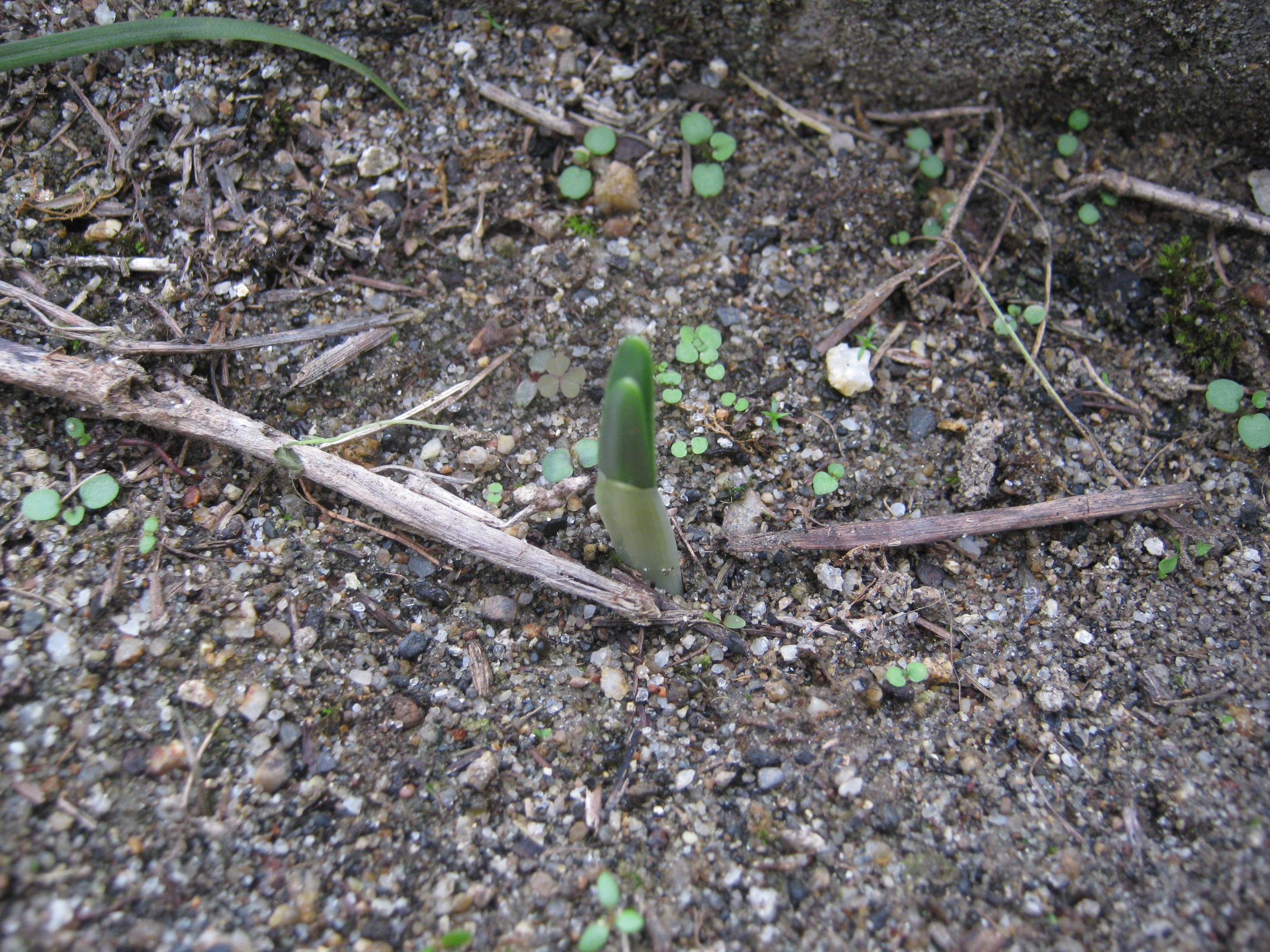 キバナタマスダレ(黄花玉簾) 2025/10/03 ヒガンバナ科 ゼフィランサスとは属が違うようです。 ゼフィランサスと違って夏は葉が消えてしまうよう。 畑の花コーナーに植えました(2025/09/29) 芽が出ました(2025/10/14)