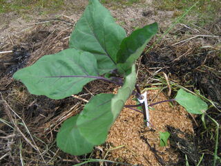 植える場所をスコップでちょっと掘るとボコッとモグラの穴に遭遇。