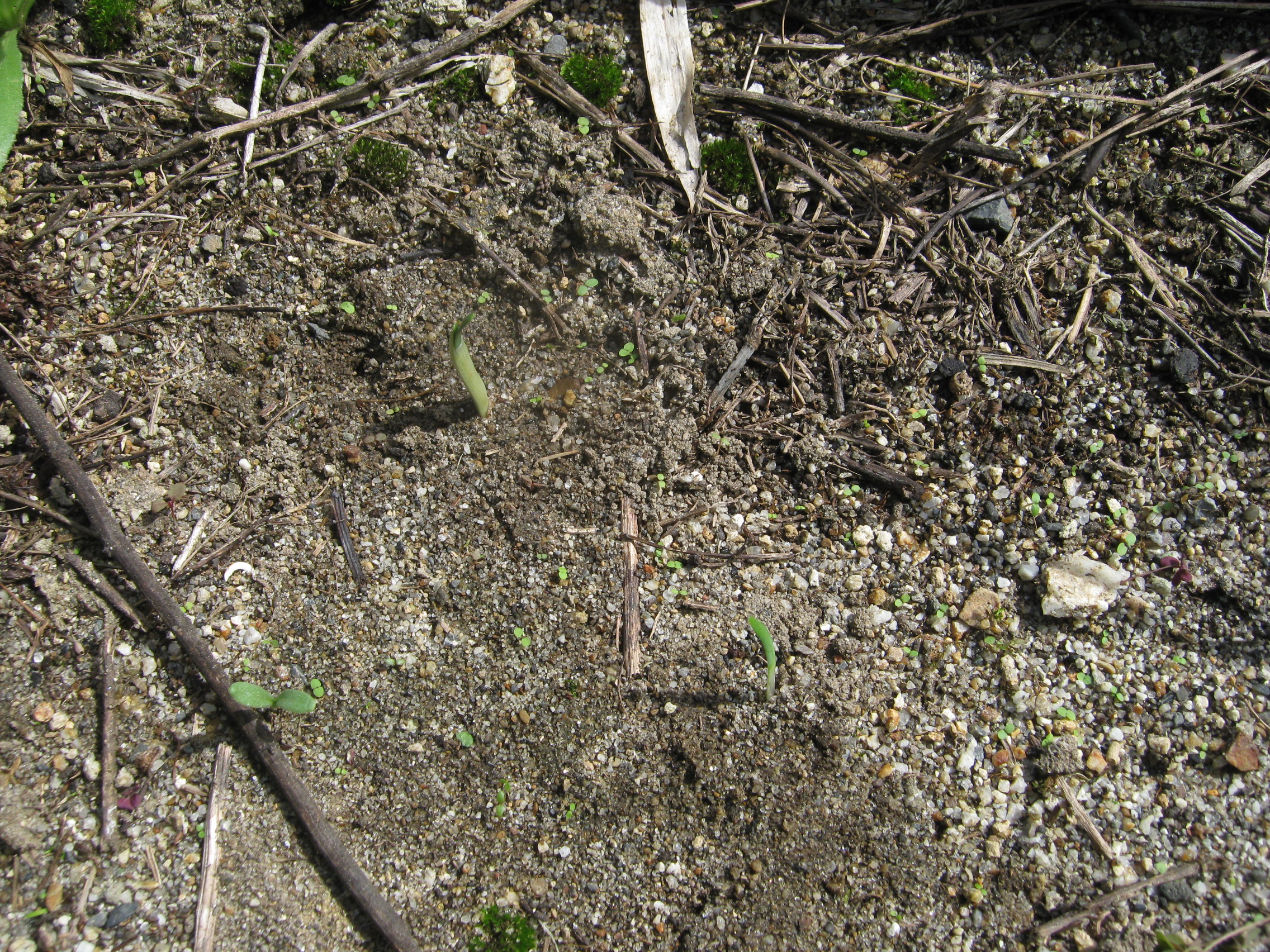 一つ植えた場所から芽が出てきましたが、直ぐそばに似たような芽が出ています。