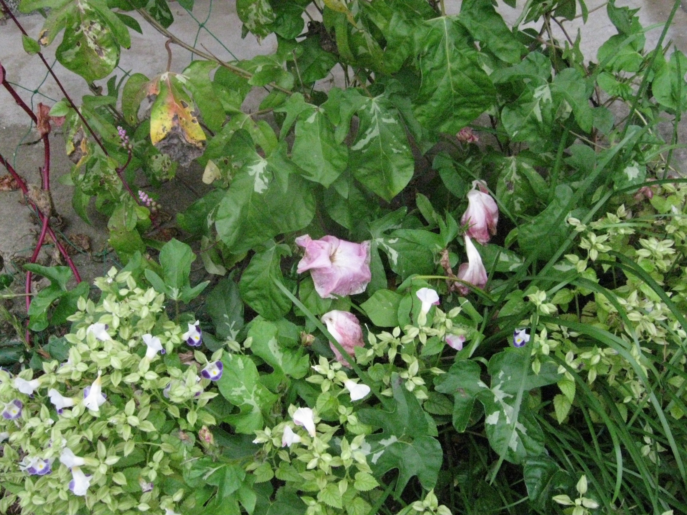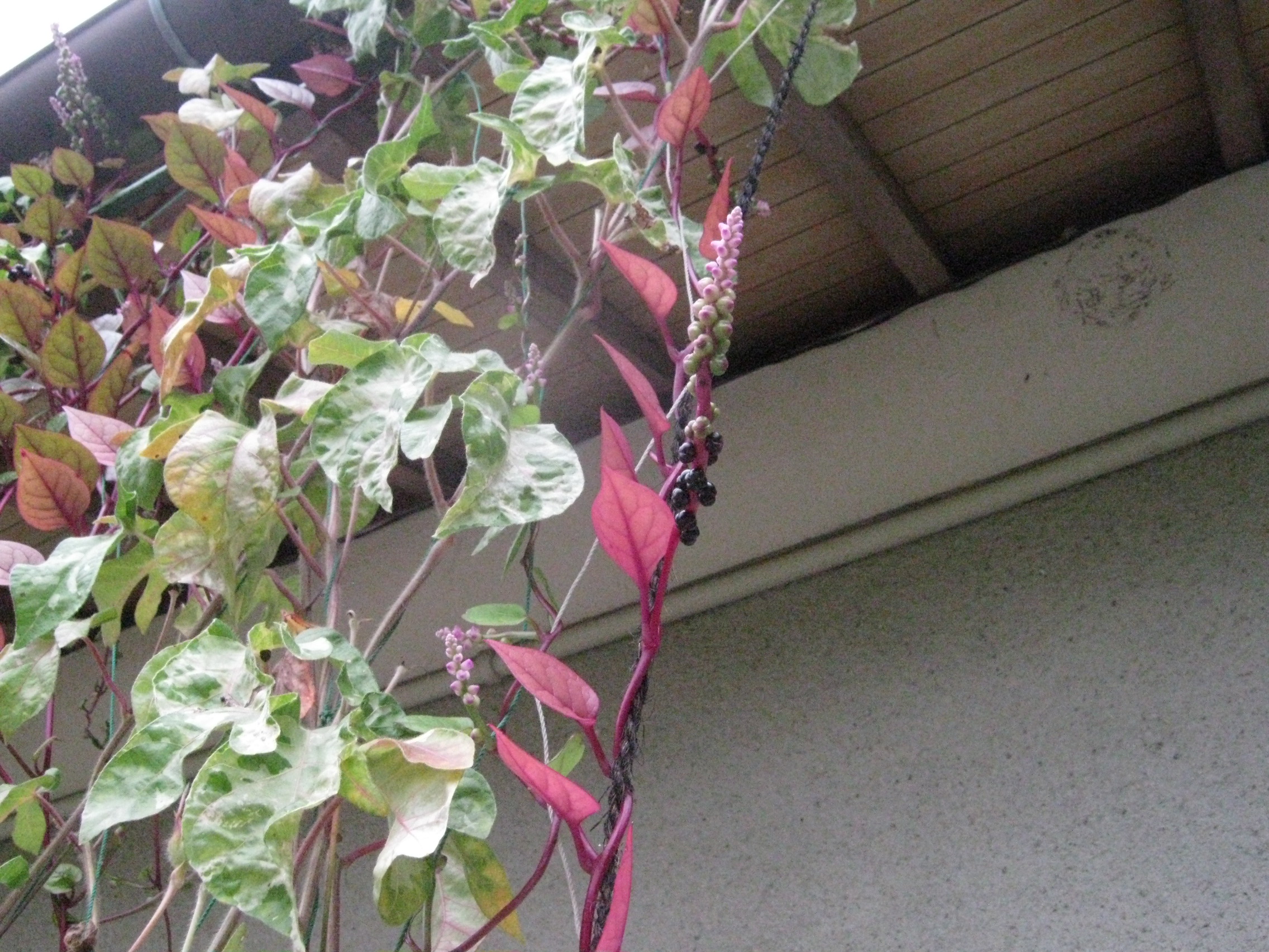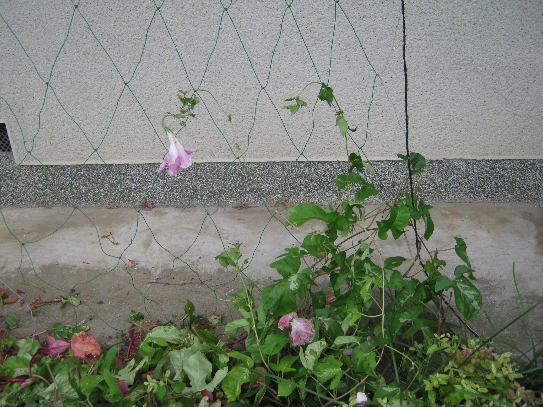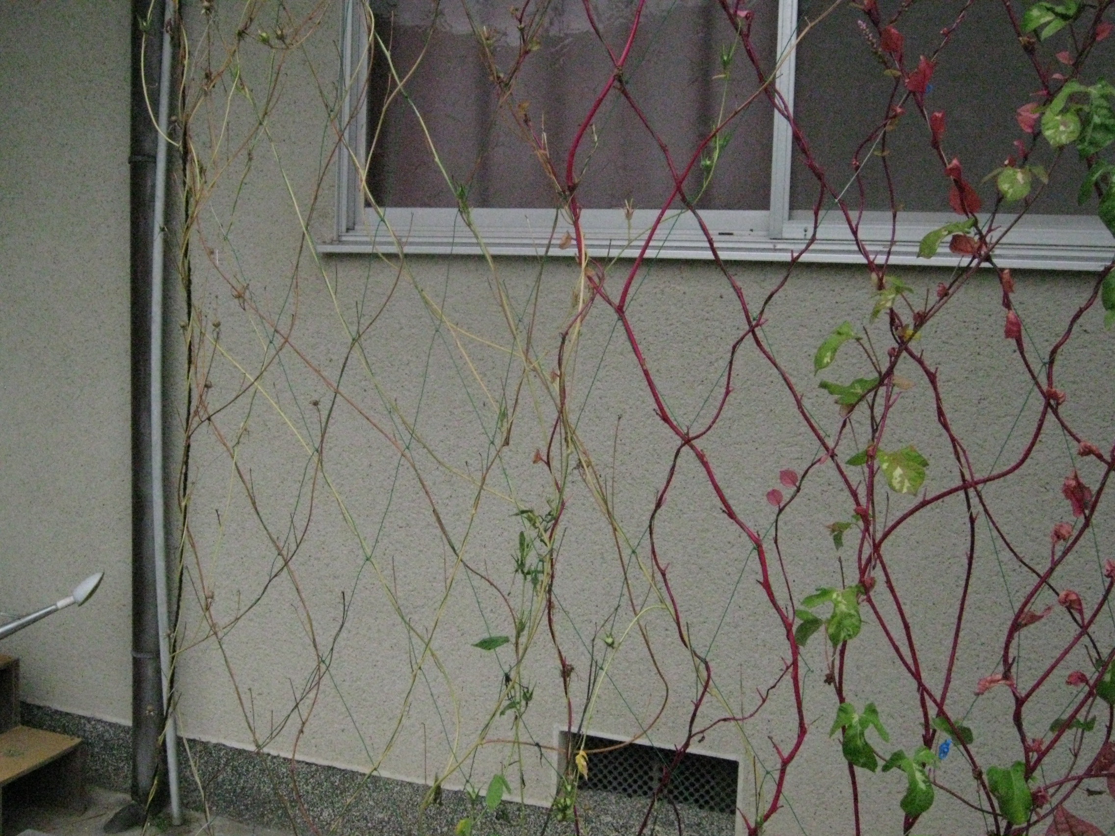 白朝顔とツルムラサキはすべ取り外し、ピンクの朝顔の蕾のついているツルだけ残しました。