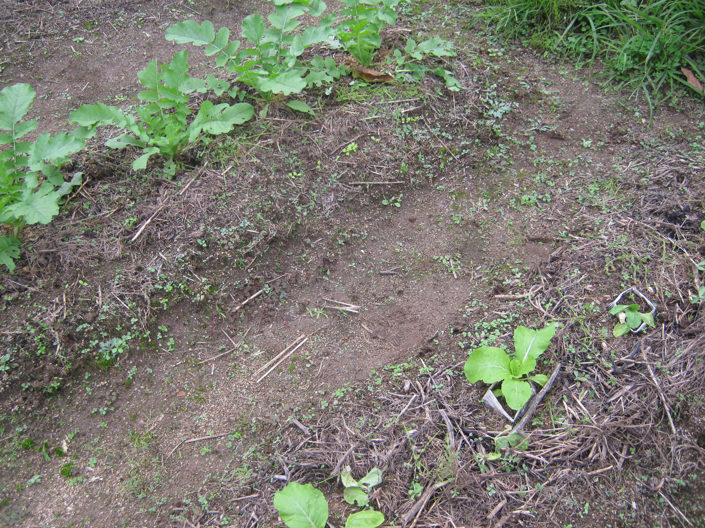 白菜は順調なのは少し大きくなった気がしますが、今年も菜花になりそうな予感。