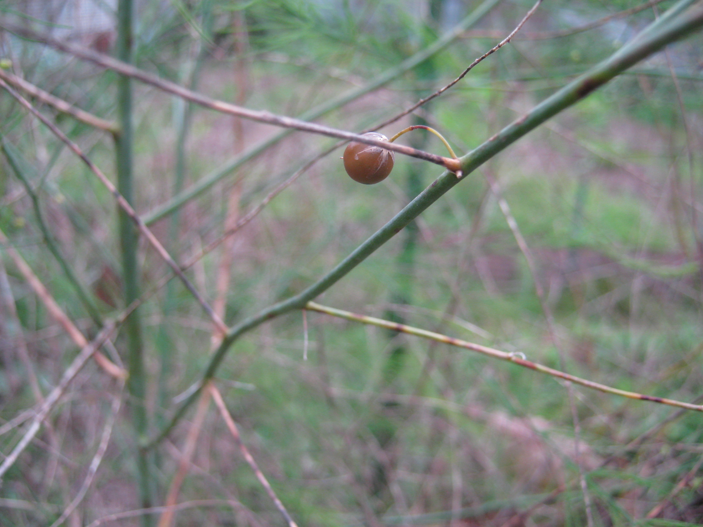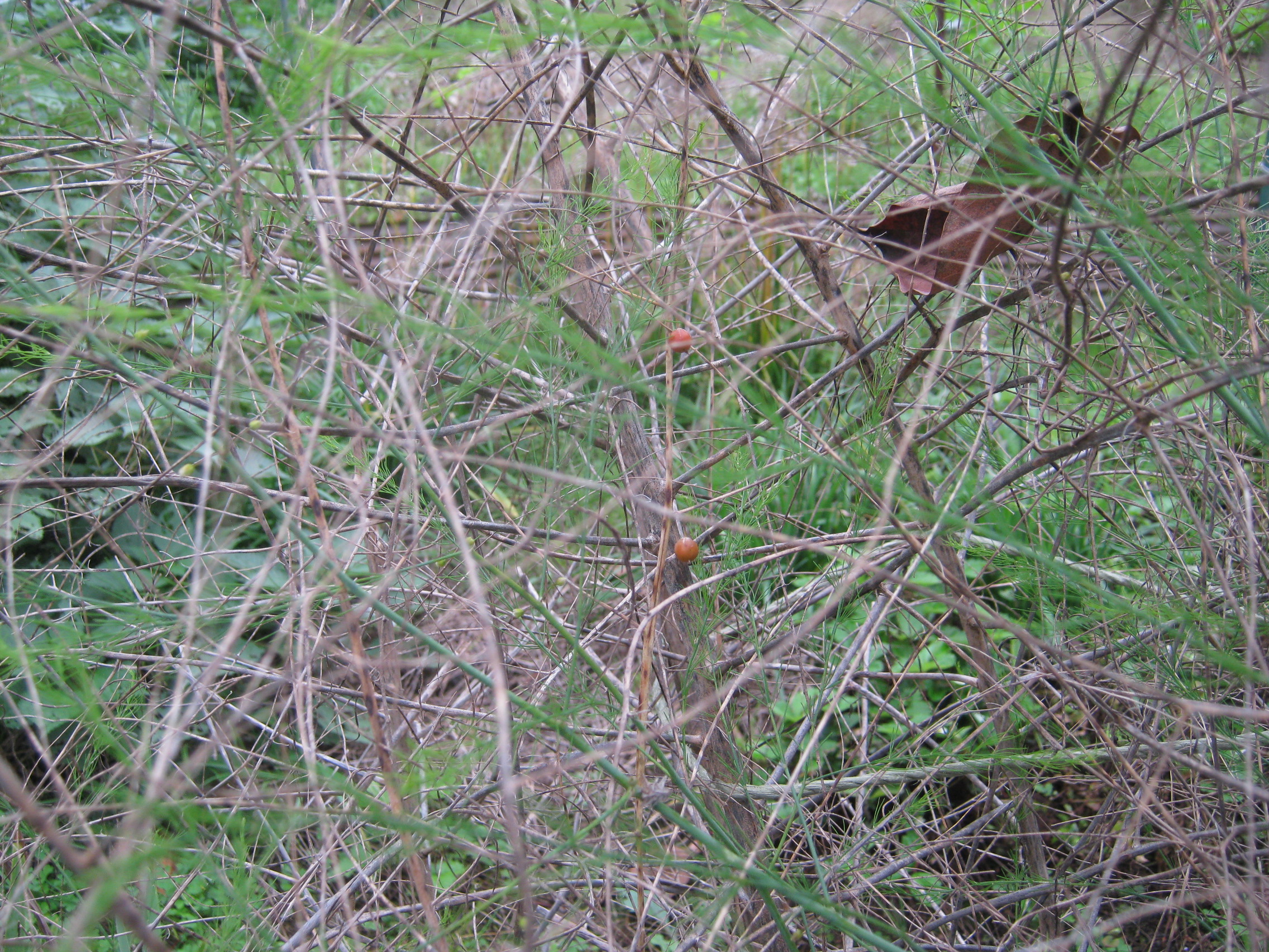 2025/10/31(金)アスパラの実が色づき始めました 野菜::アスパラガス アスパラの実が赤く目立ち始めました。 一番赤いのは完熟でしょうか。 口にする勇気はありません。 青い時は2つ見つけることができましたが他にもありました。 2番目に赤いの。 これはまだ茶色ですが、青い時よりは目立ちます。 さらに2個見えています。 全部で5個。 本来ならもっとたわわに実るようですが、肥料もあげずに放置状態なので実をつけただけでも上等です。 環境悪いので種で脱出したがっていたりして(汗)