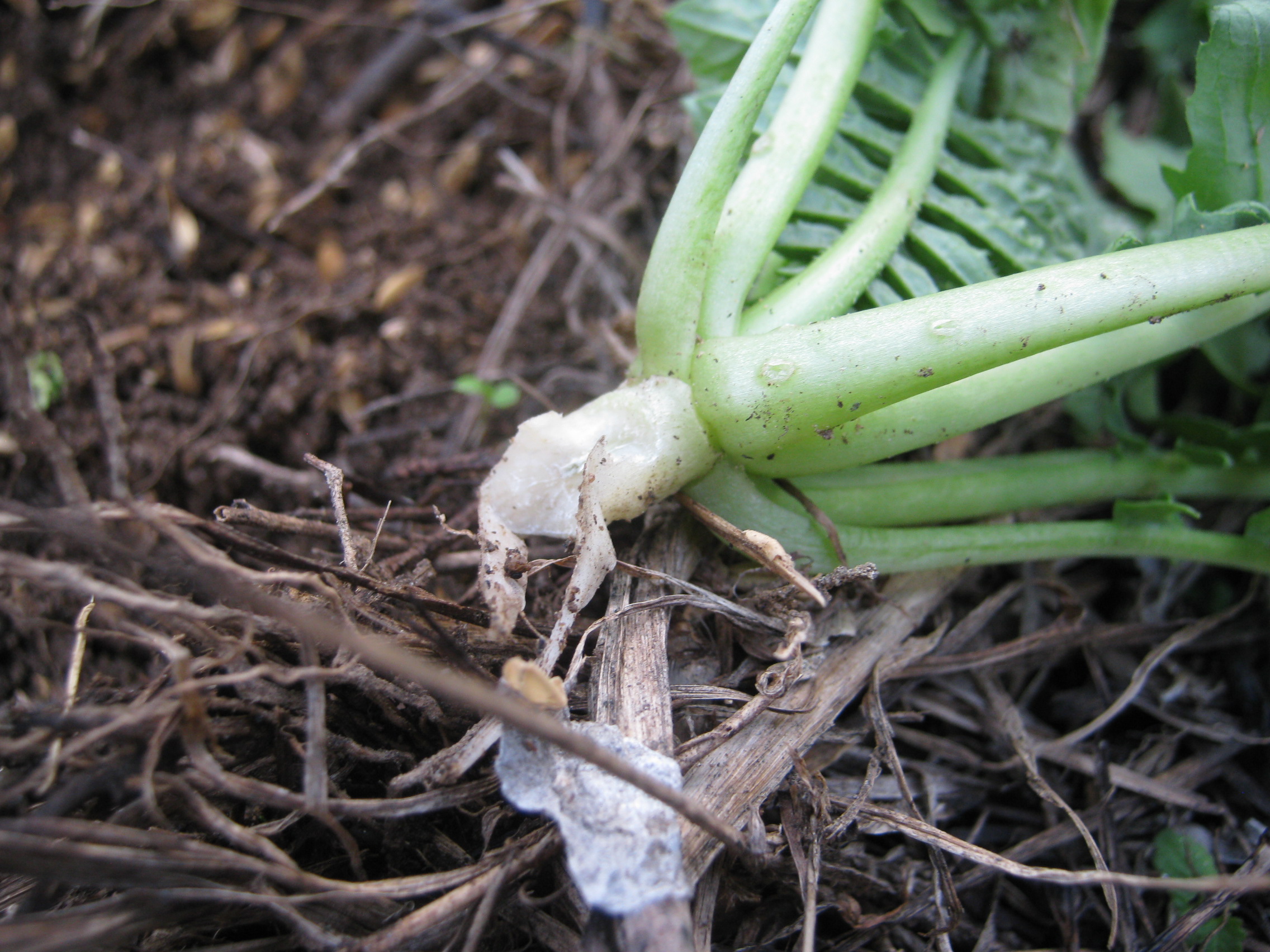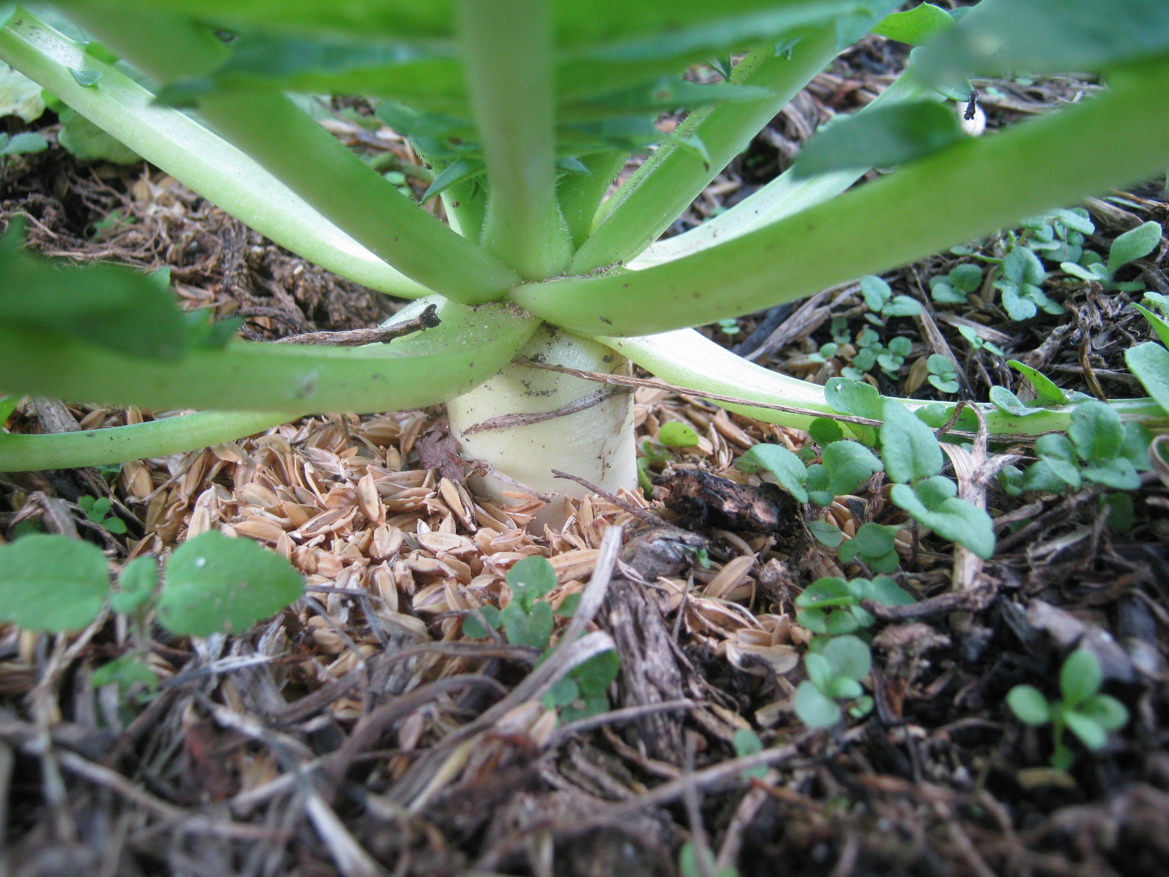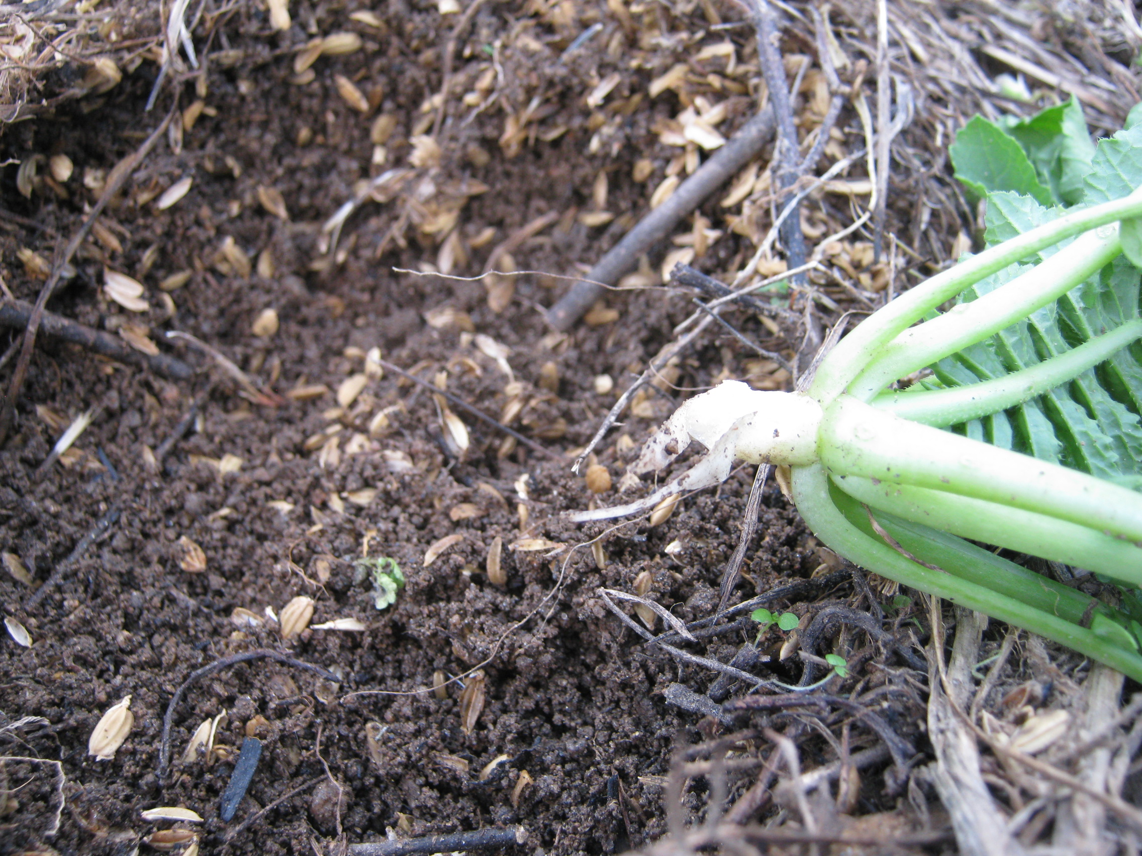 2025/11/01(土)大根、1本脱落 野菜::ダイコン 晴れの日は毎日畑をのぞくようにしていますが、葉が1、2本しおれていることは毎日のようにあります。 今日は株全体がしおれているのがあったので、周りを掘り返そうとしたら、倒れてきました。 ネキリムシの仕業でしょうか。 何か出てこないかと周りを掘り返しましたが、見つかりませんでした。 移動した後でしょうか。 順調な大根は直径2cm弱。 だいぶ大根らしくなってきました。