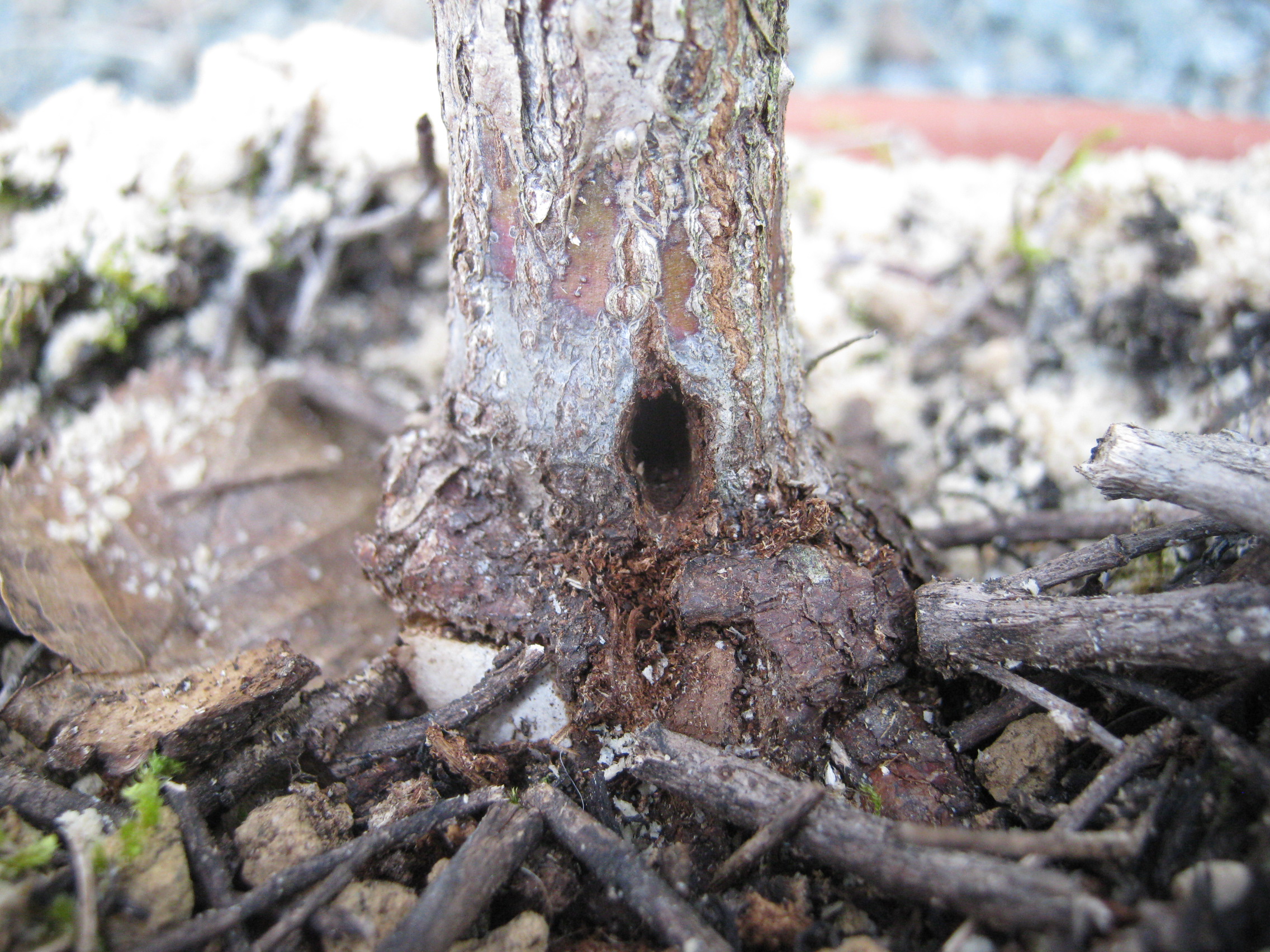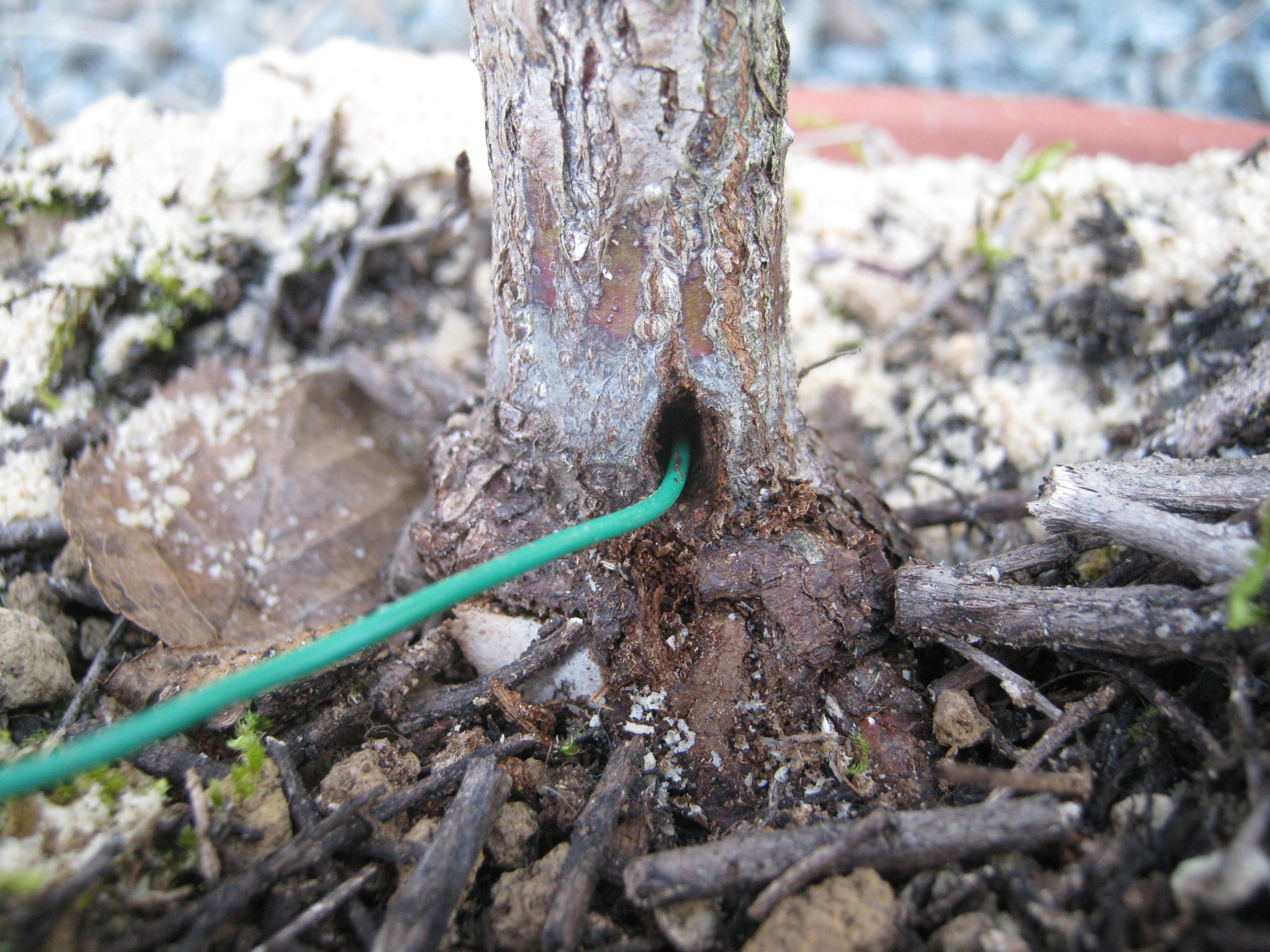 出ている位置がはっきりしているのに、穴がふさがれていて見つけるのに苦労しましたが、大きな穴があいていました。
