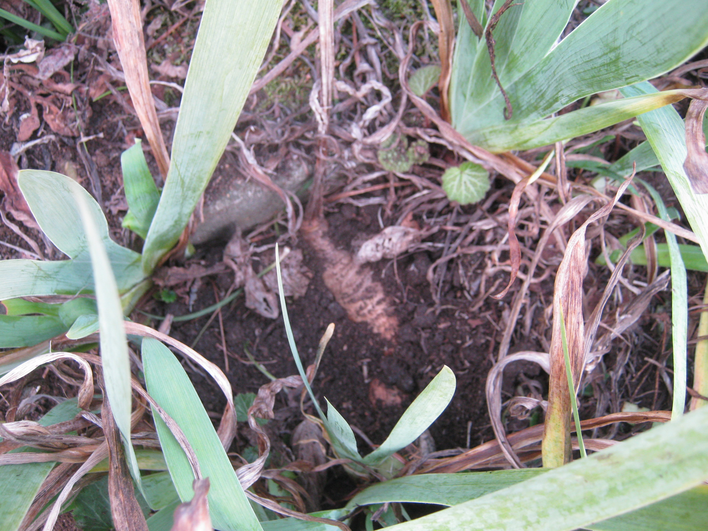 イチハツの根がむき出しになってしまいましたが、思ったより丈夫そうな地下茎。