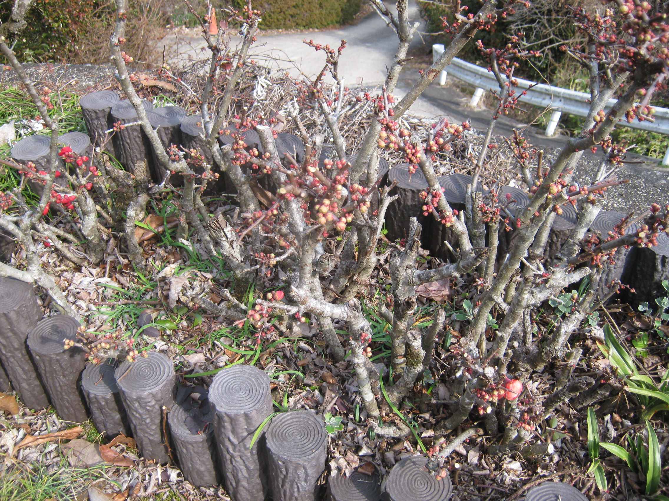 ローズマリーの剪定に飽きてきて今日は木瓜の蕾のついていない細い枝を落としました。