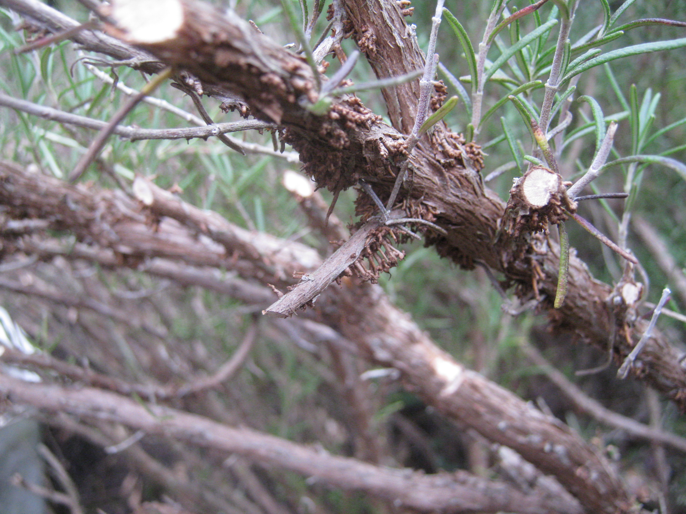 ローズマリーは湿気が嫌いだったはずですが、苔が生えています。