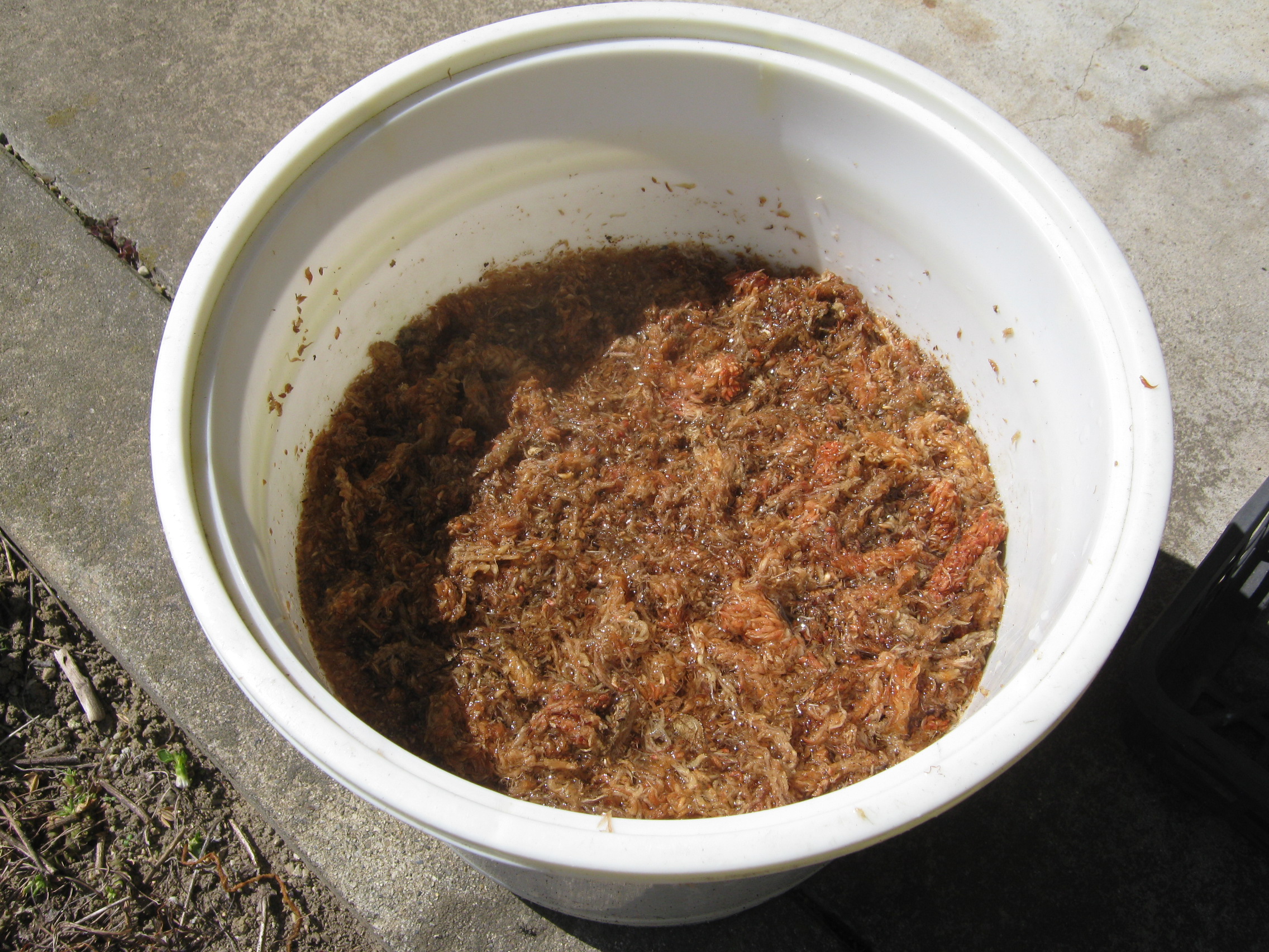大きめの鉢用に水苔をたくさん浸けたので、今年は水苔のみで植えました。