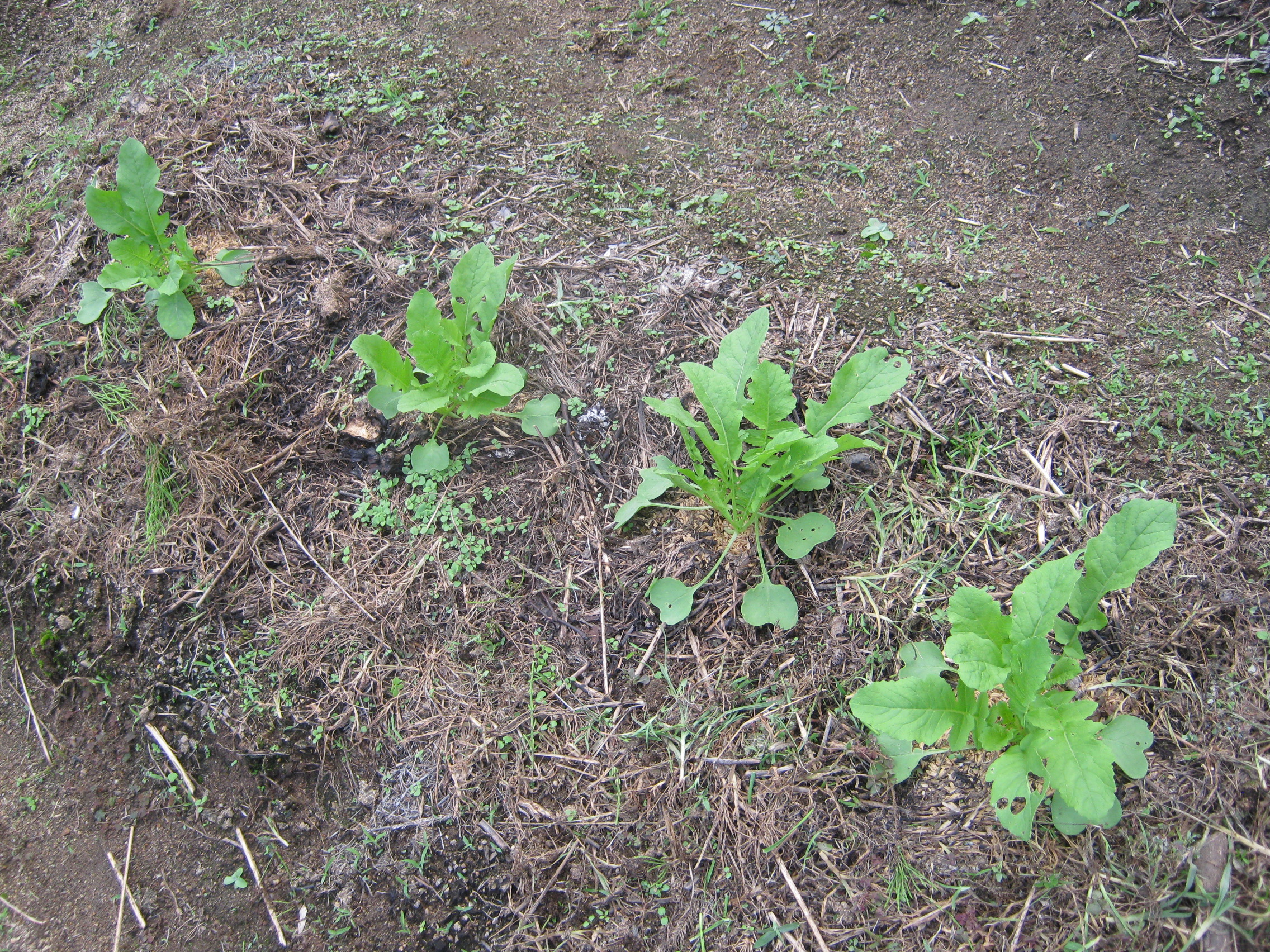 種を直接蒔いた大根は順調で見に行くたびに大きくなっています。