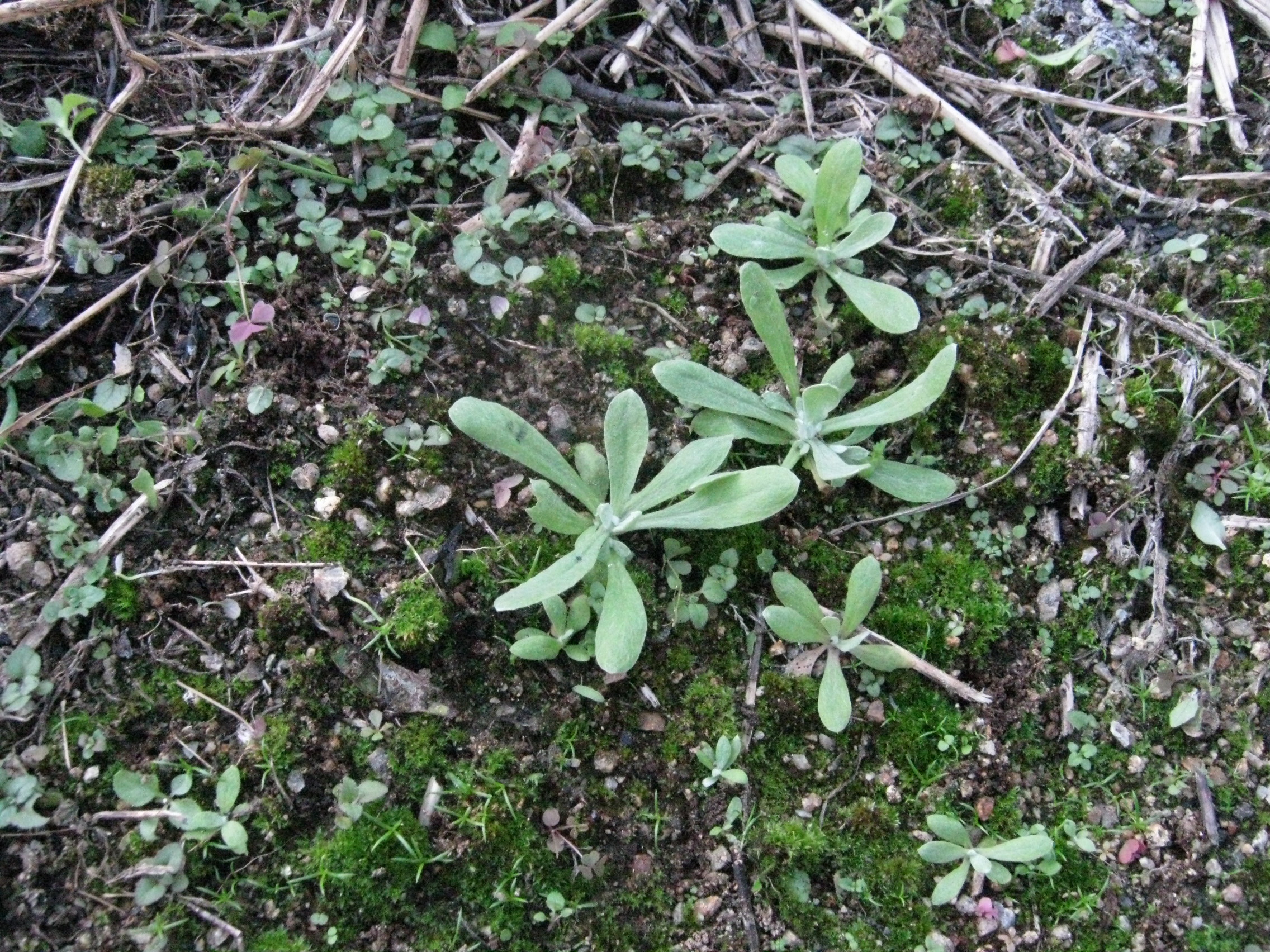 あきらめていたら、生えていた場所付近にハハコグサらしい芽が幾つも出ています。