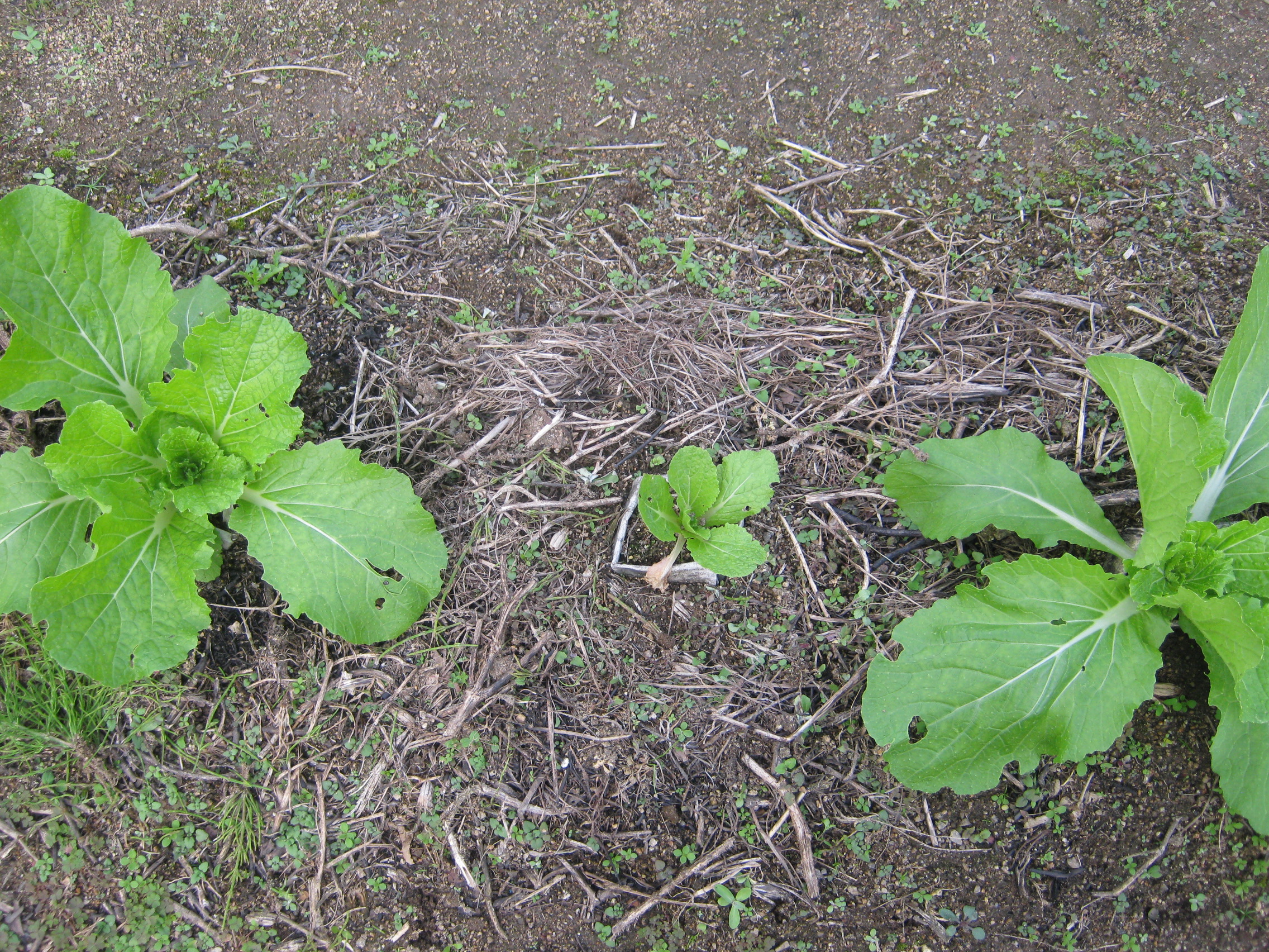 真ん中の小さいのは間引いた苗を植えておいたもの。