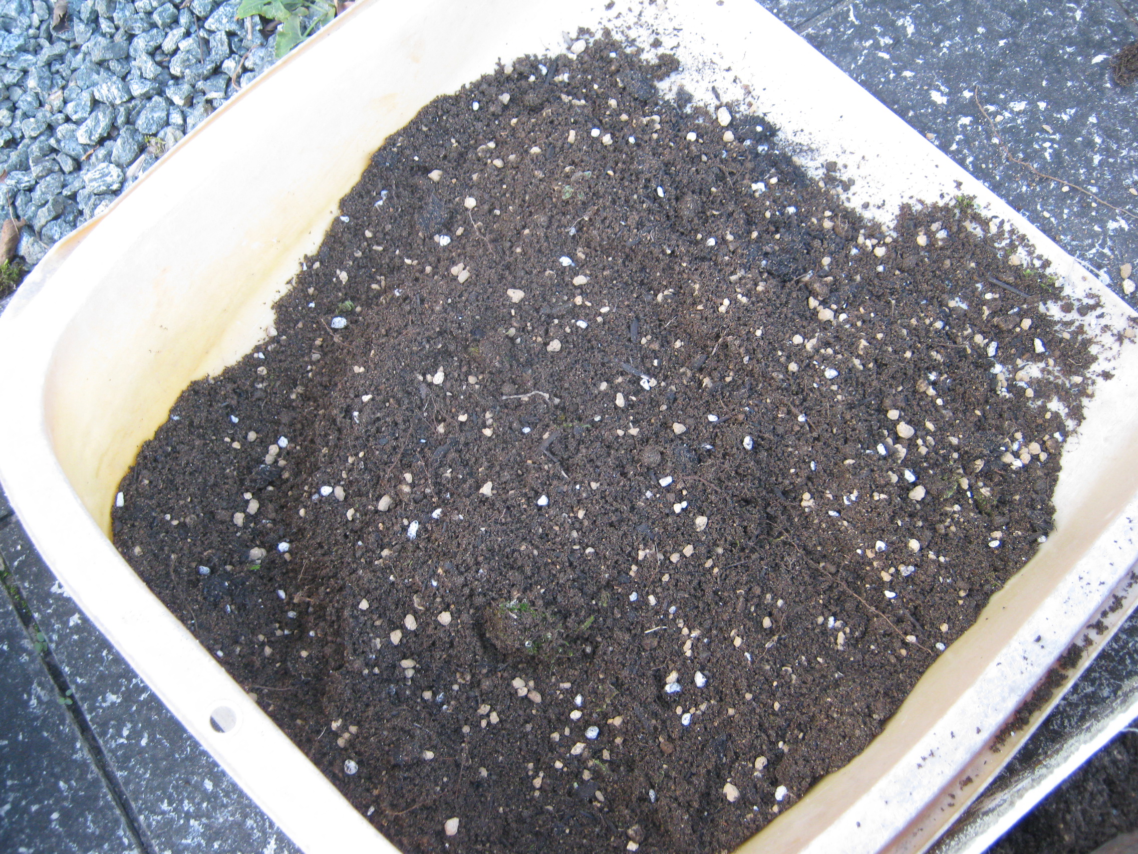土は赤玉土と古いプランターの土と果樹が蘇るリサイクル用の土を混ぜました。