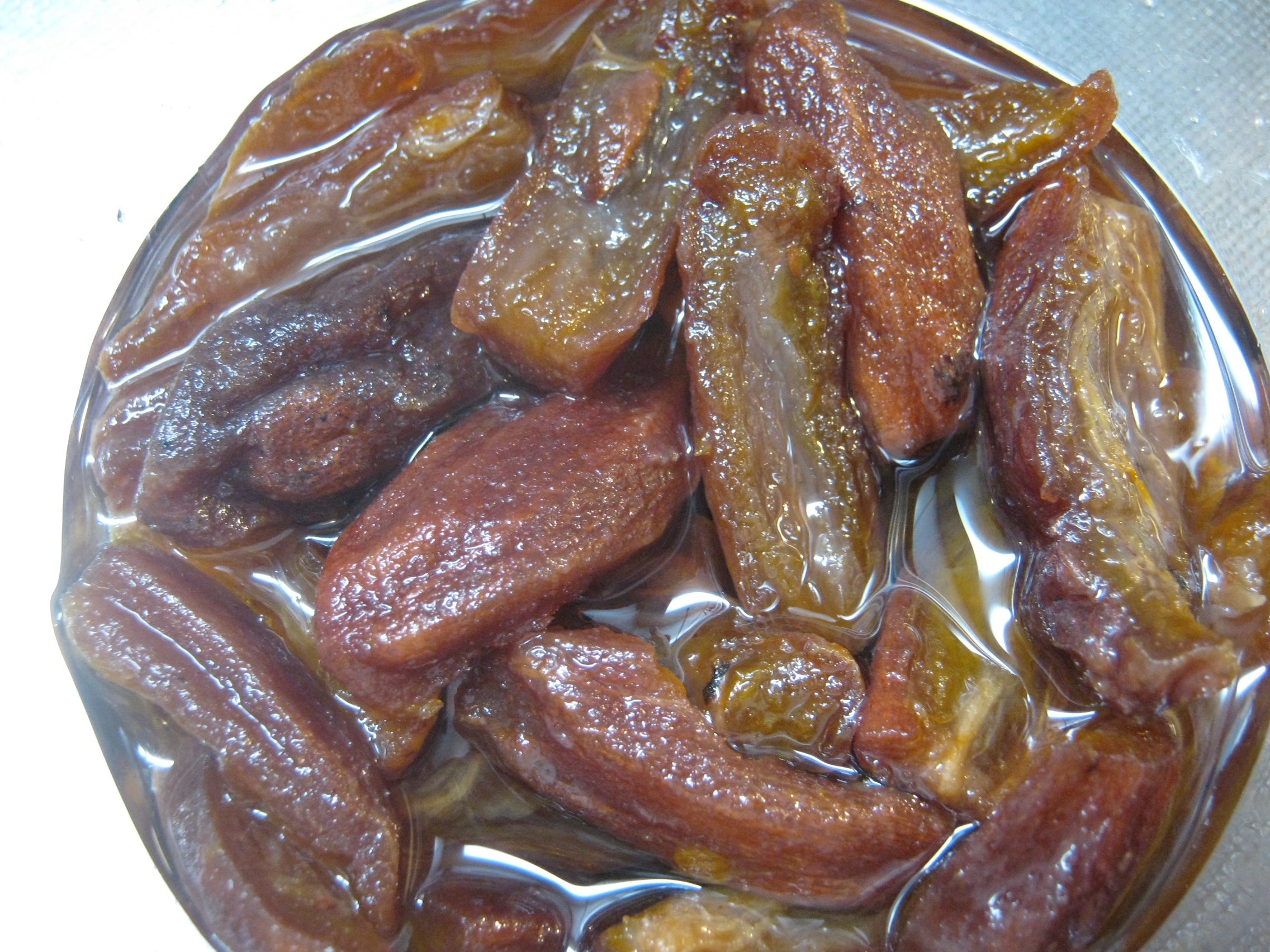 皆が帰ってくるお正月に向けて賞味期限が迫ったみりんを使い切るため、全部使ったのでヒタヒタ以上になっていたはずですが、液から顔を出しています。