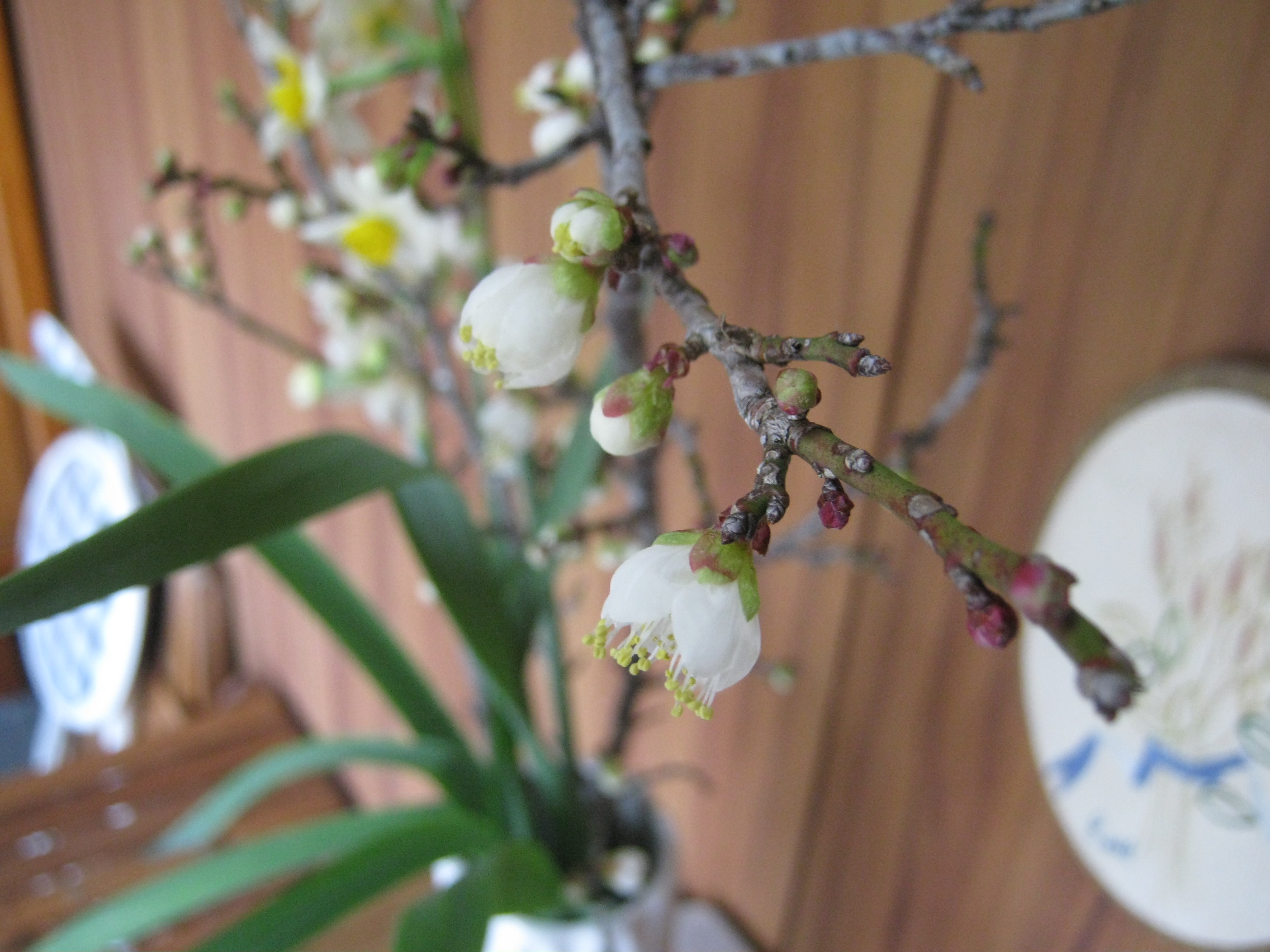 2026/01/19(月)梅がほころびました 果樹::ウメ花::スイセン 玄関の梅が咲き始めています。 去年に比べると随分と早いです。 日本水仙は畑でも満開の状態。 梅も白いものがチラホラ覗いています。 明日から寒波が居座るようなので、咲くのはまだ先だと思いますが。 畑で春を告げるオオイヌノフグリも咲いていました。 草引きまだ大丈夫だと油断していましたが、また手遅れになりそうです。