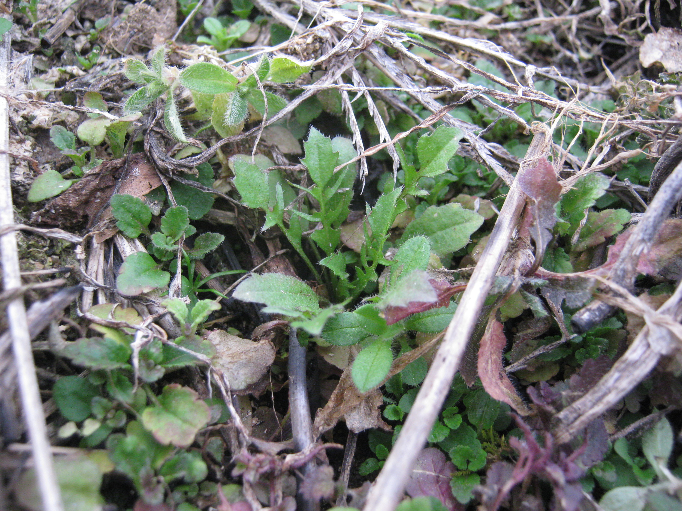 畑のナズナとハハコグサのツーショット。
