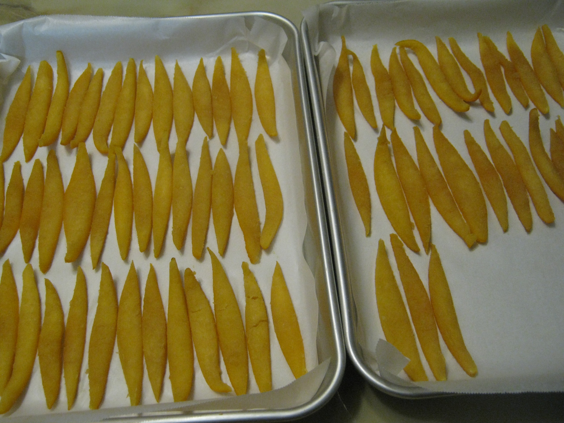 花柚子は12個を8等分(96枚)。今回は伊予柑5個を16等分(80枚)。