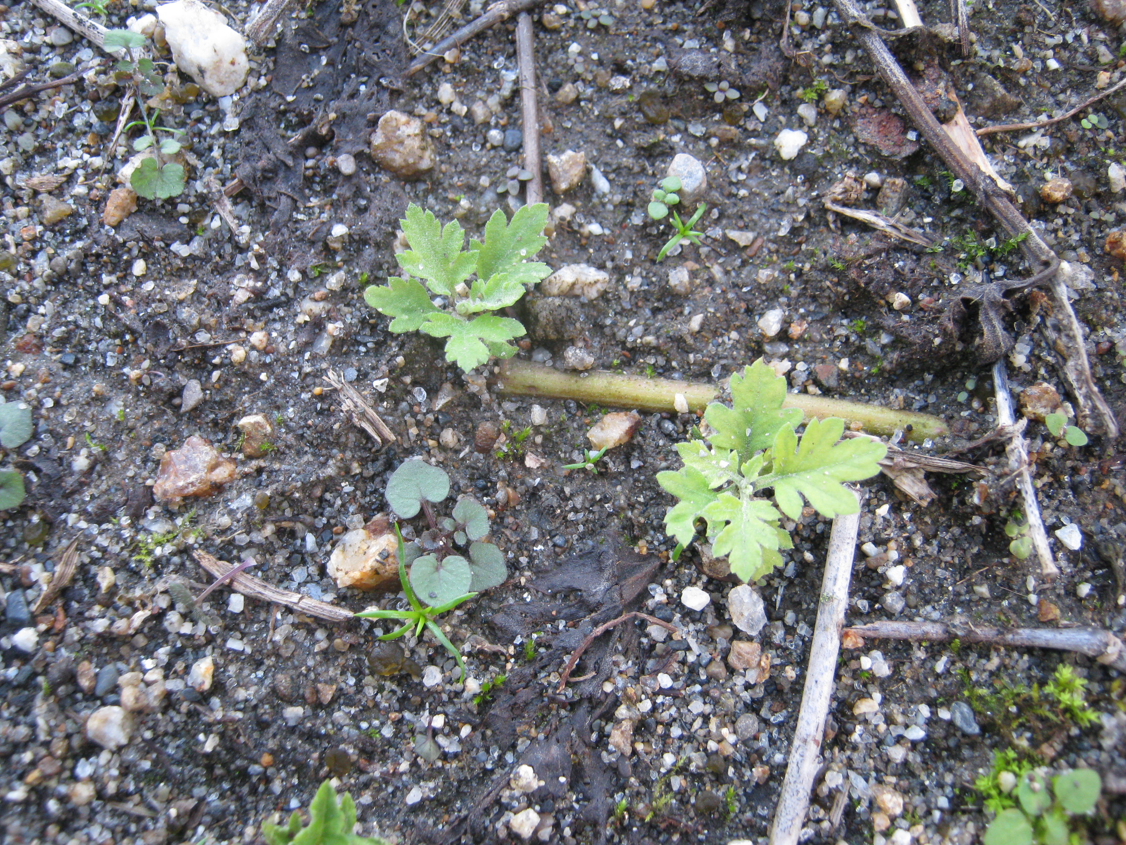 本葉ものぞき始めましたが、ポットの一つにカビのようなもの(2023/06/12)