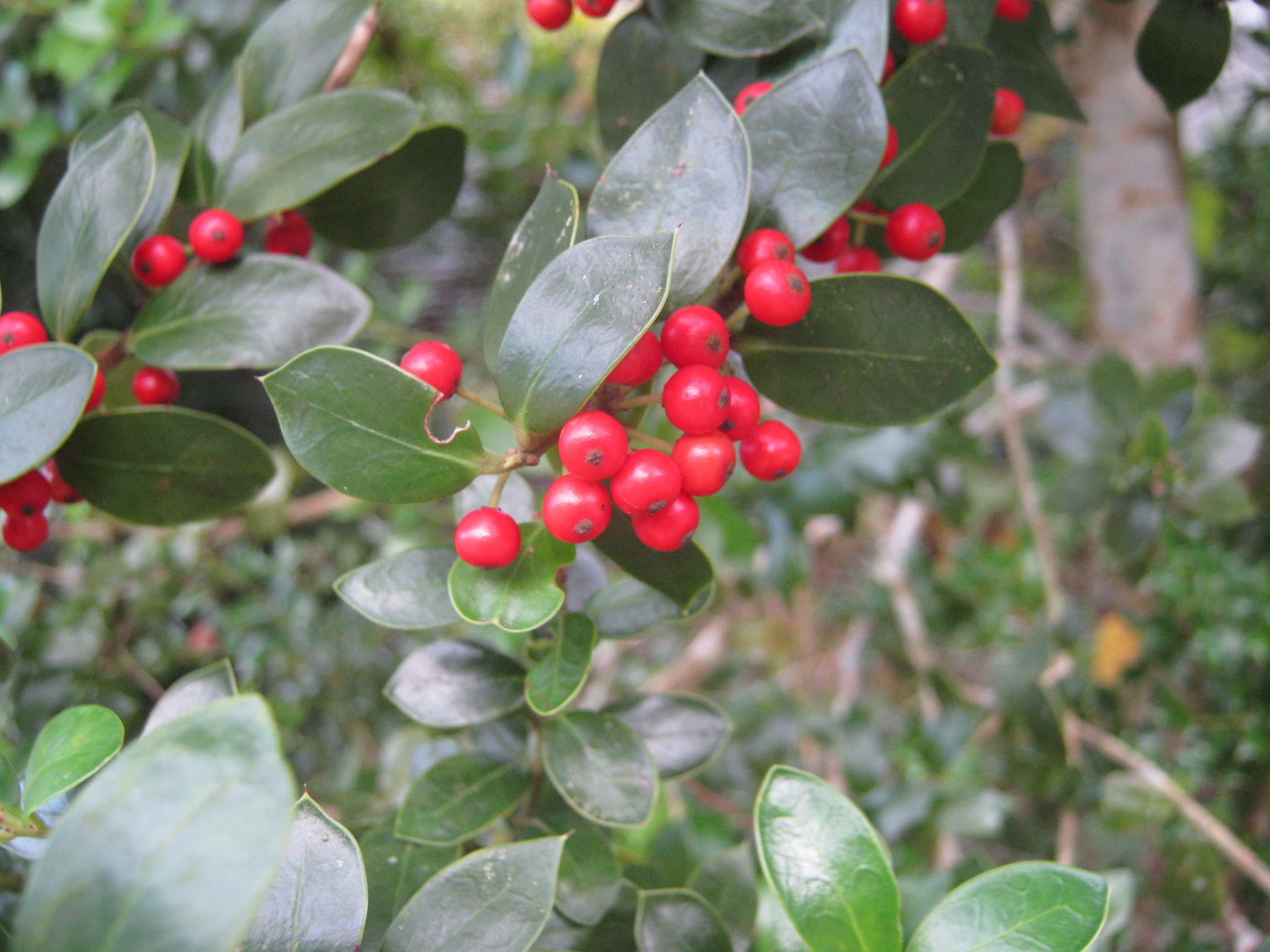 アマミヒイラギモチ(姫柊) 2025/11/05 モチノキ科 ヒイラギとは科が違うようです。 ヒメヒイラギ(2016/01/26) 赤い実がなりました(2021/11/14) アマミヒイラギモチの若い枝(2025/11/05) 赤い実がつきました(2025/11/05)